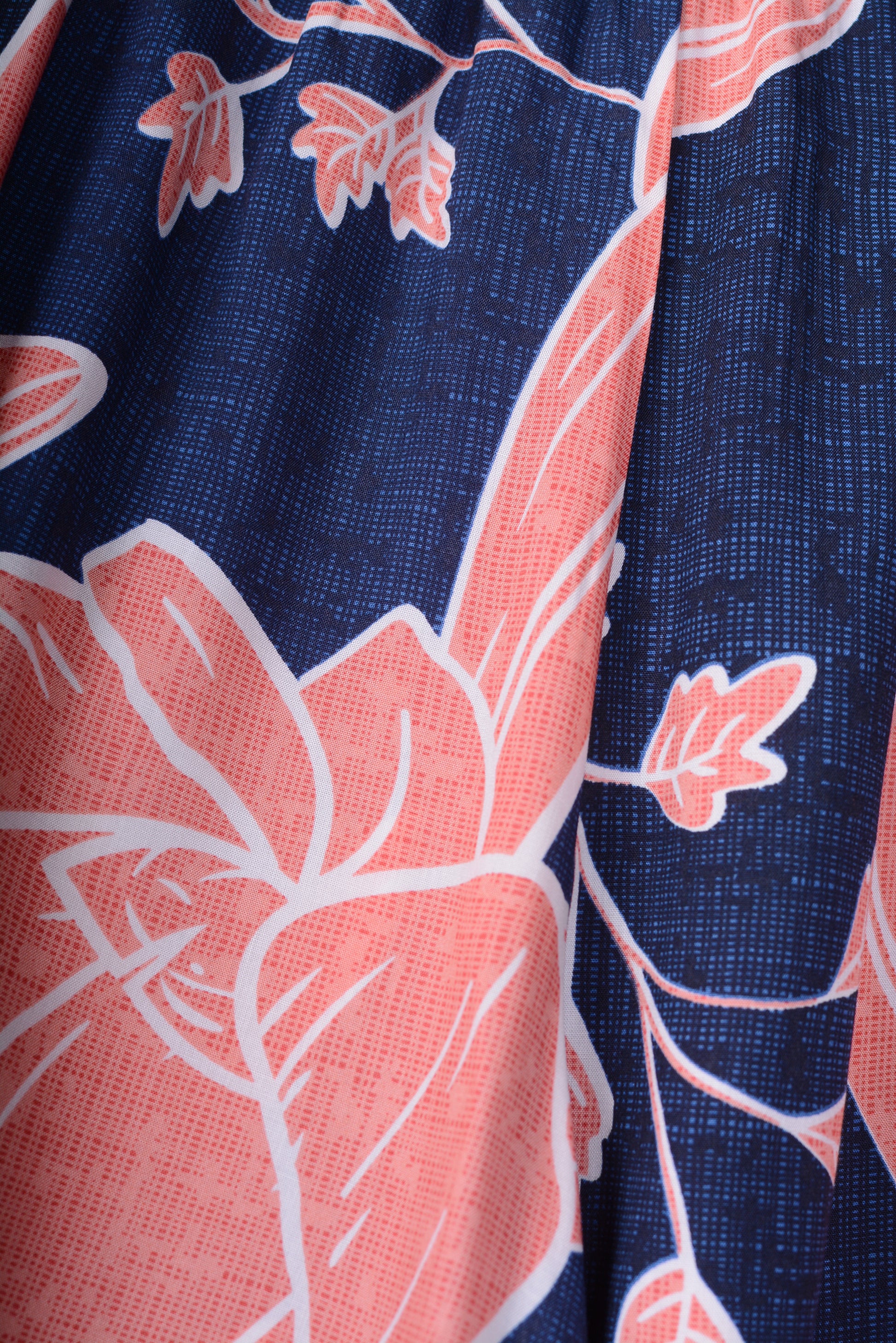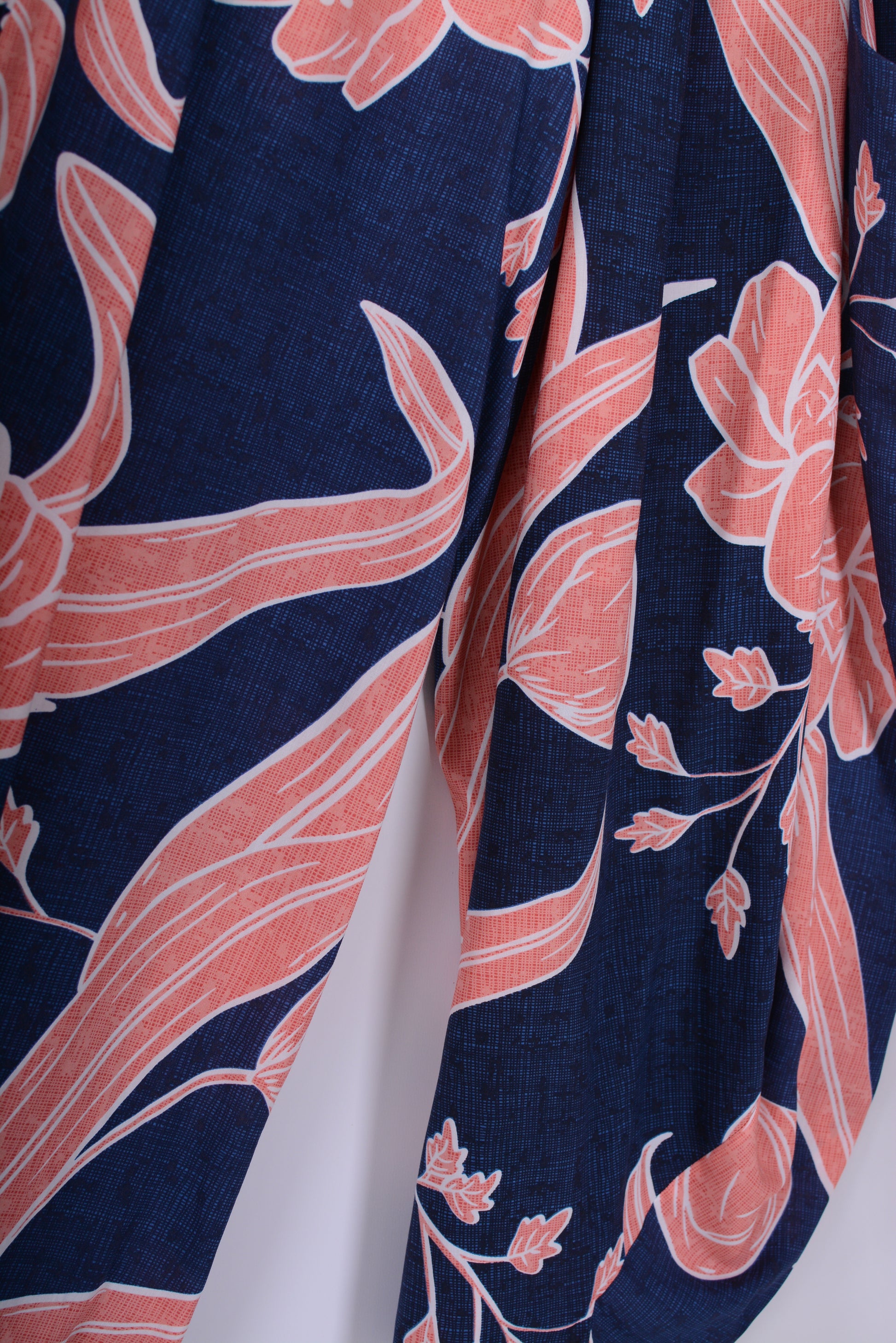 A beautiful pair of wide leg barrel trousers in a beautiful premium quality Viscose fabric as you would expect from this brand. They hang perfectly in a barrel/balloon shape. In traditional Lagenlook style they feature large front pockets. The great length and comfy elasticated waist make them the perfect addition to your wardrobe. They are Navy and Coral and have a lovely arty pattern and look so cool on!