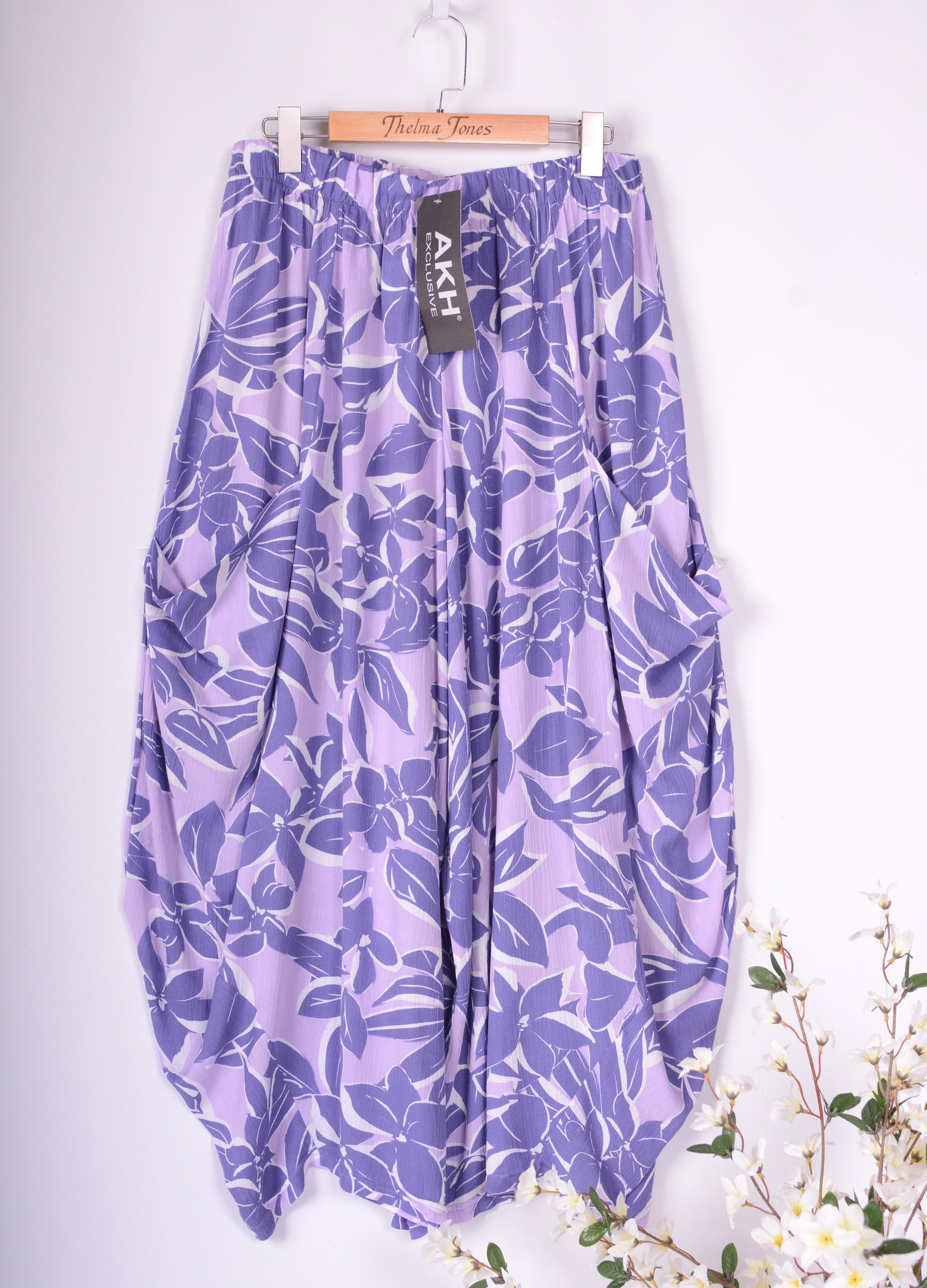 A beautiful pair of wide leg barrel trousers in a beautiful premium quality Viscose fabric as you would expect from this brand. They hang perfectly in a barrel/balloon shape. In traditional Lagenlook style they feature large front pockets. The great length and comfy elasticated waist make them the perfect addition to your wardrobe. They have a lovely arty pattern and look so cool on!